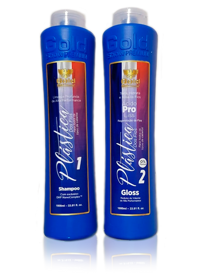 Escova Orgânica Sem formol com adição de Ácido glioxílico Gold Show Premium Plástica dos Fios 2x1000ml